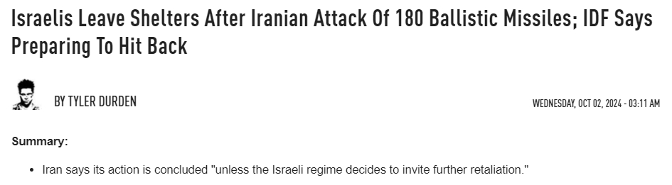 知名金融博客ZeroHedge报道,伊朗称其行动已经结束,“除非以色列政权决定采取进一步报复”。