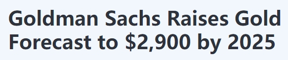 高盛上调了对黄金的预测,将明年的黄金价格预期从每盎司2686美元上调至2025年的2973美元。