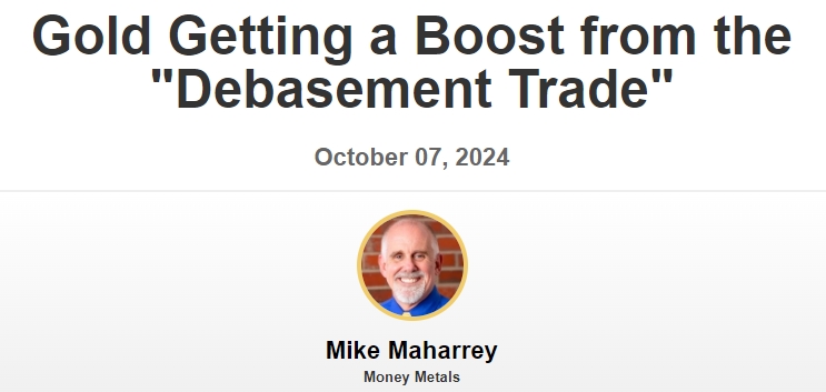 Money Metals市场分析师迈克·马哈瑞(Mike Maharrey)引述摩根大通分析观点称,黄金价格受到“贬值交易”(debasement trade)的推动,美元走弱和实际债券收益率下降为黄金创造了顺风。摩根大通分析师表示,这种动态“可能会持续下去”。