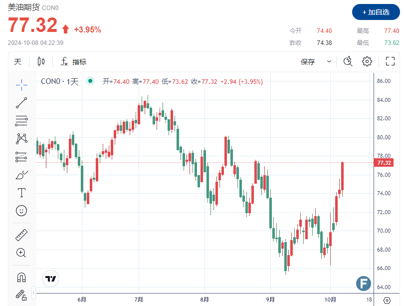 周一(10月7日),中东紧张局势加剧引发了以色列可能袭击伊朗石油基础设施的可能,油价大幅上涨。