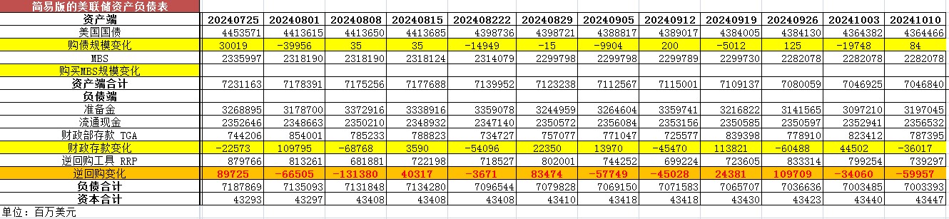 2024年10月10日,美联储照例公布了当周的资产负债表。