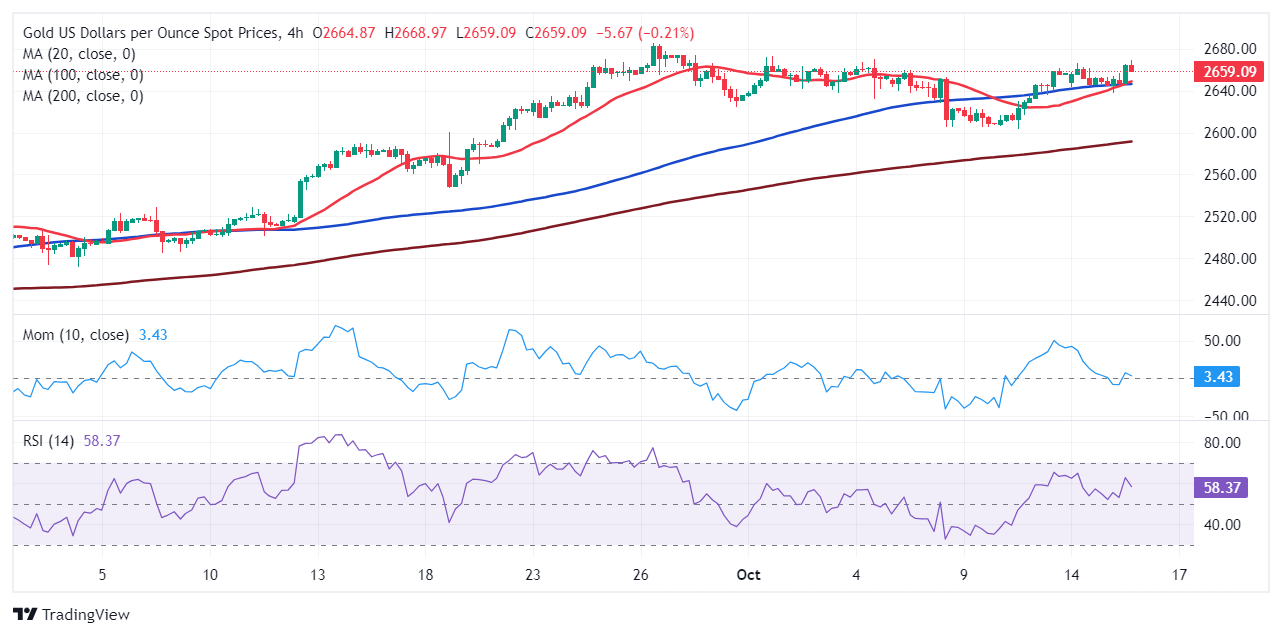 周三(10月16日)亚市盘中,现货黄金在昨日大涨后维持日内反弹走势,金价目前位于2666美元/盎司附近。FXStreet首席分析师Valeria Bednarik撰文,对黄金技术前景进行分析。